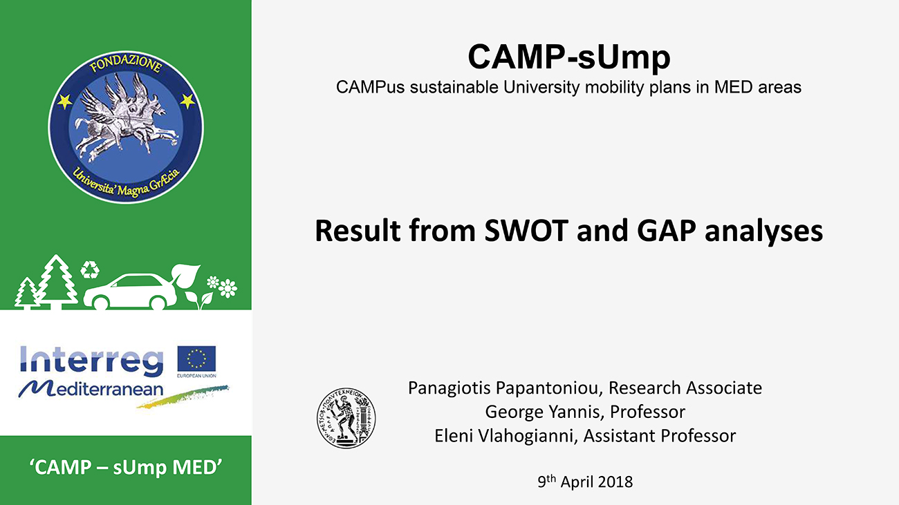 “Result from SWOT and GAP analyses” at the Go Sump Webinar on “Methodologies and Indicators for Urban Mobility Planning” organised by the Med Urban Transport Community (9th April 2018) ID cp294 Presentation Tags international comparisons, smart cities, urban mobility