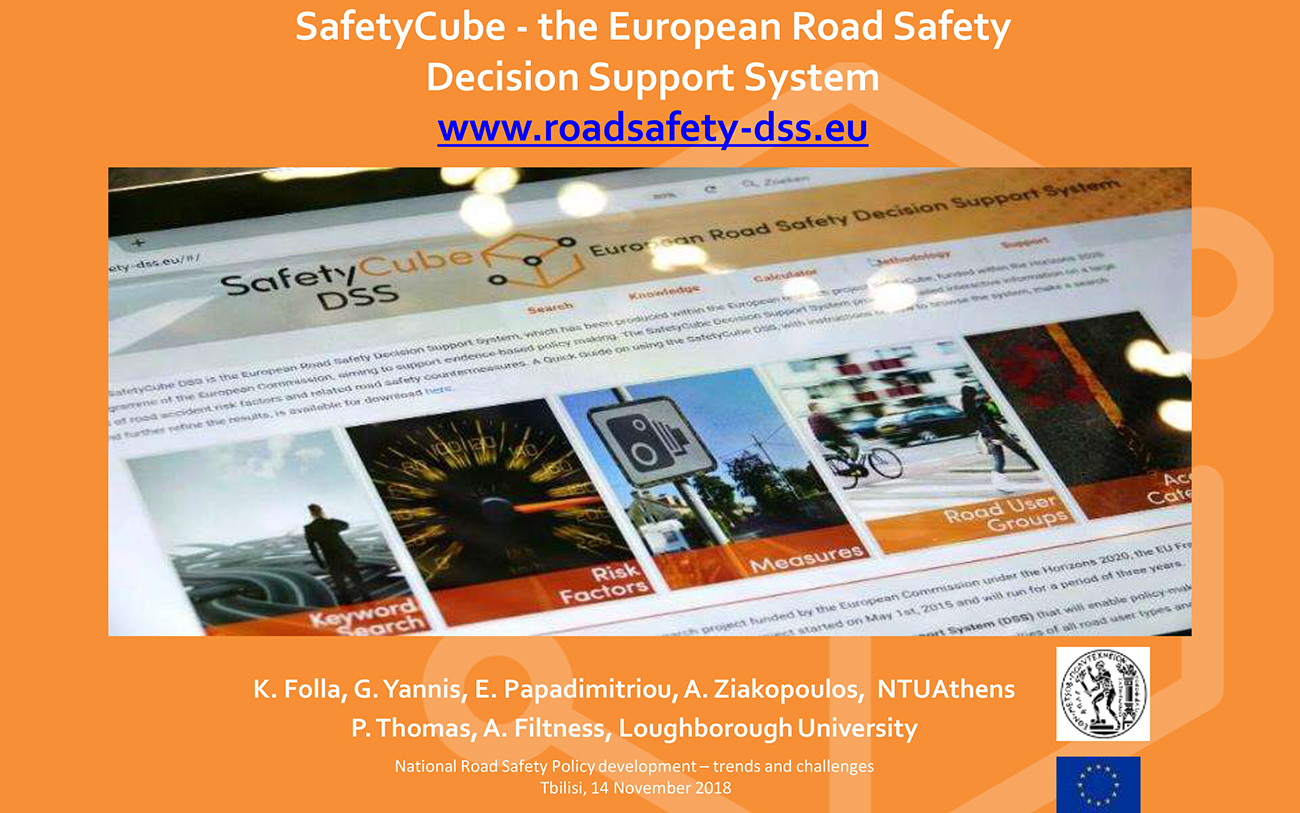 “SafetyCube – the European Road Safety Decision Support System” at the National Road Safety Policy Development – Trends and Challenges Conference, organised by the Ministry of Economy and Sustainable Development and UNECE (Tbilisi, Georgia, 14 November 2018)