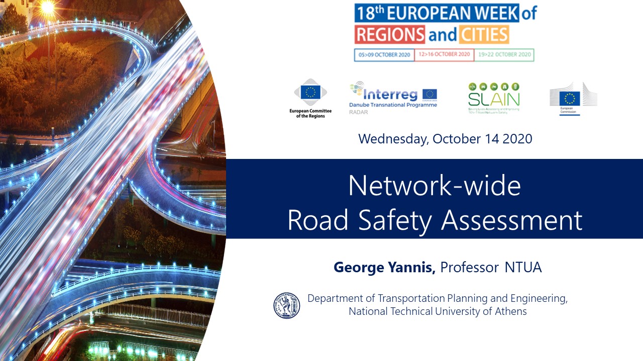 “Network-wide Road Safety Assessment” at the 18th European Week of Regions and Cities, organised by RADAR and SLAIN projects (14 October 2020). ID cp432 Presentation Tags road infrastructure, road safety audit