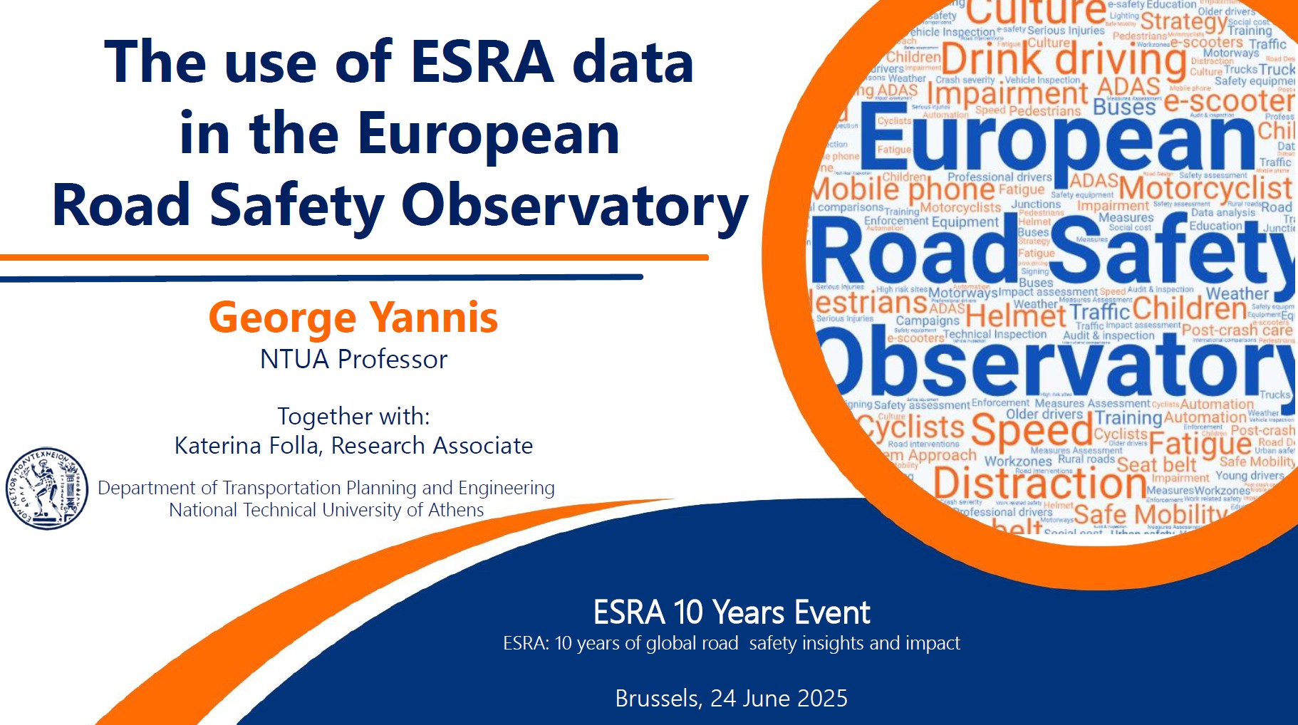 “The use of ESRA data in the European Road Safety Observatory”, at the ESRA: 10 years of global road safety insights and impact organized by ESRA & VIAS (Brussels, 24 June 2025) ID cp741 Presentation Tags