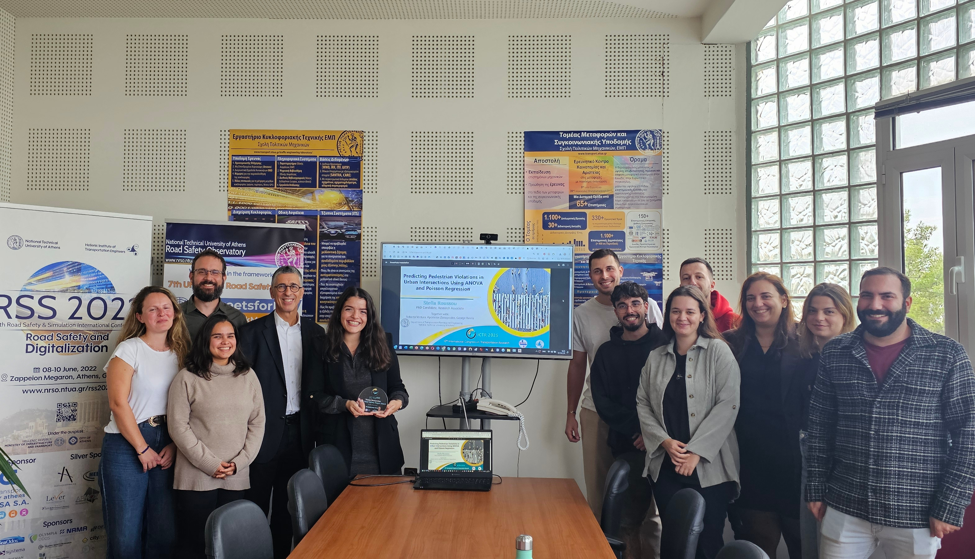 Stella Roussou, NTUA PhD Candidate & Researcher, received the Young Researcher Best Paper on Road Safety Award 2025 during the International Congress on Transport Research 2025. The Award is granted jointly by the Hellenic Institute of Transport (HIT/CERTH) and the Hellenic Institute of Transportation Engineers (HITE). The award concerned the paper titled: “Predicting Pedestrian Violations in Urban Intersections Using ANOVA and Poisson Regression ”, co-authored by Roberto Ventura, Apostolos Ziakopoulos and George Yannis. ![]()